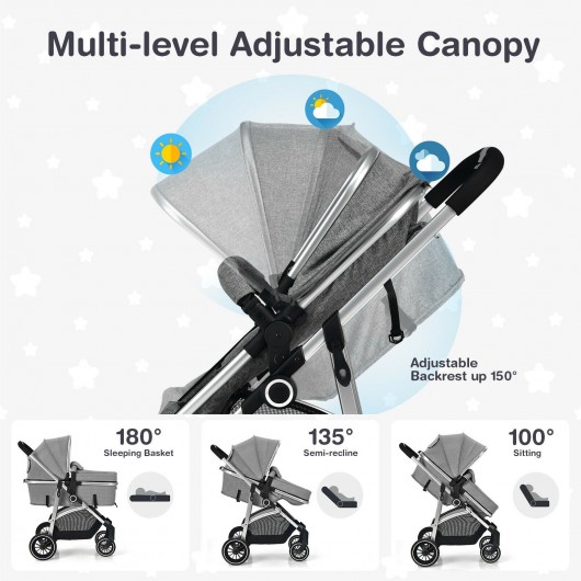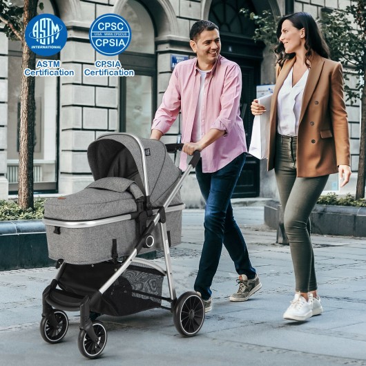 2-in-1 Convertible Baby Stroller with Reversible Seat-Gray