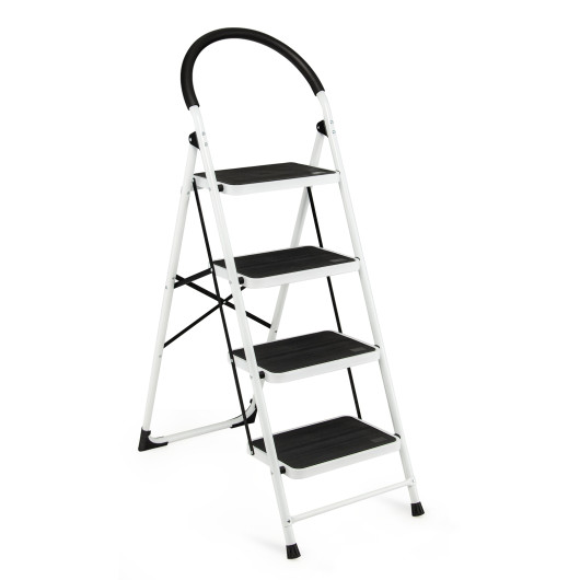 This is foldable four steps ladder which is ideal for any task around the kitchen office bathroom and garage.