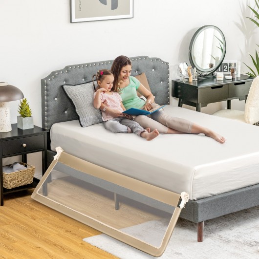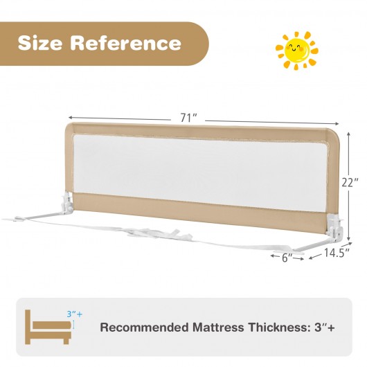 71 Inch Extra Long Swing Down Bed Guardrail with Safety Straps-Beige