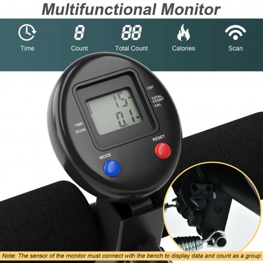 Adjustable Sit Up Bench with LCD Monitor-Red