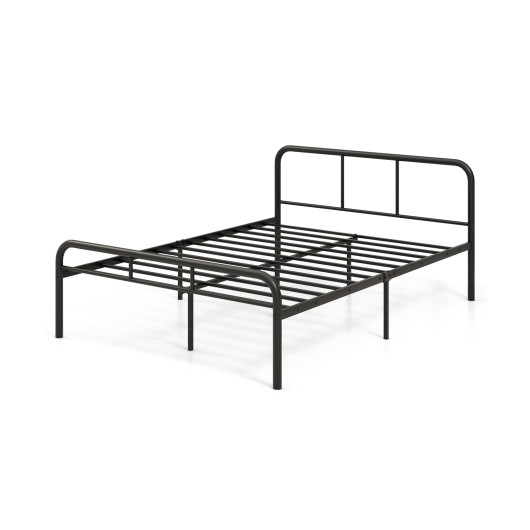 Full Bed Frame with Headboard and Footboard No Box Spring Needed-Black