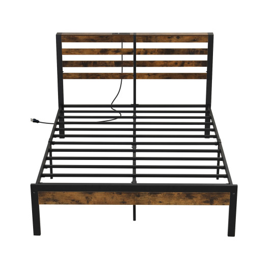 Full-Queen Size Bed Frame with Charging Station and Storage Headboard-Full Size