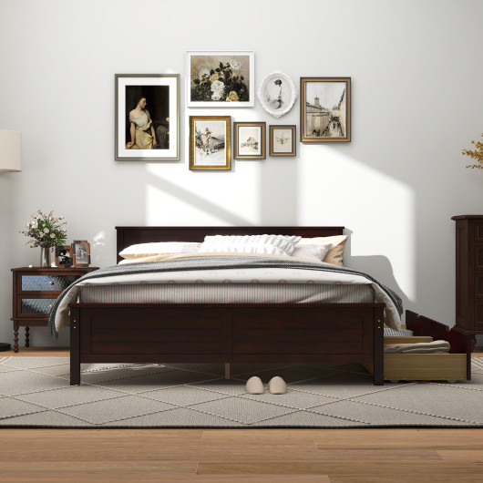 Full Size Bed Frame with Storage Drawers and Solid Wood Headboard-Espresso