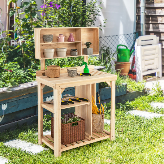 Garden Wooden Potting Table Workstation with Storage Shelf