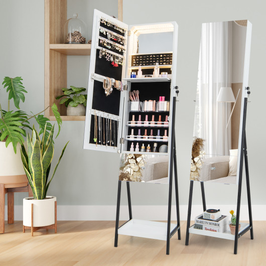 Lockable Freestanding Jewelry Organizer with Full-Length Frameless Mirror-White