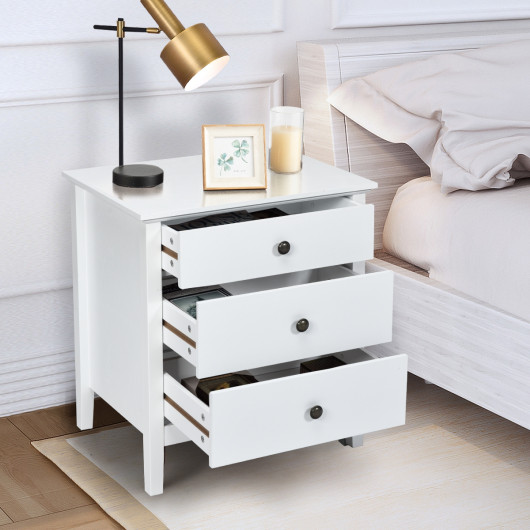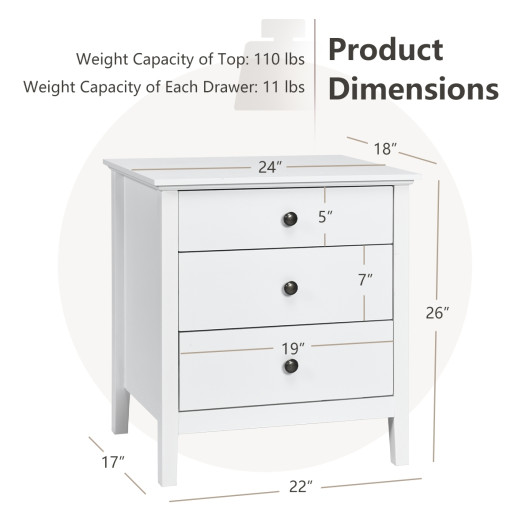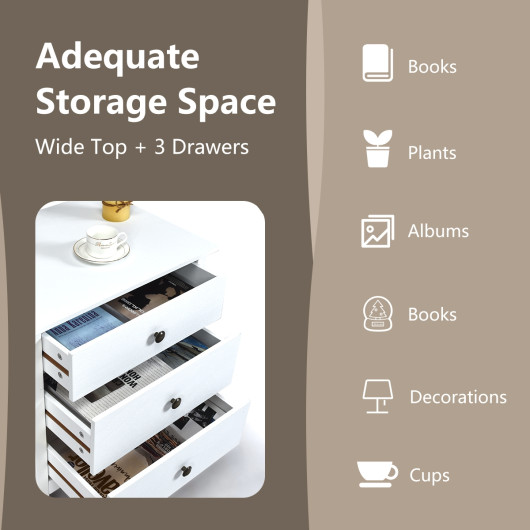 -3 large drawers and a hard countertop provide plenty of storage space.