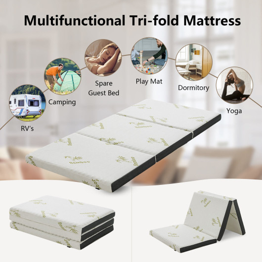 Queen 3 Inch Tri-fold Memory Foam Floor Mattress Topper Portable with Carrying Bag-S