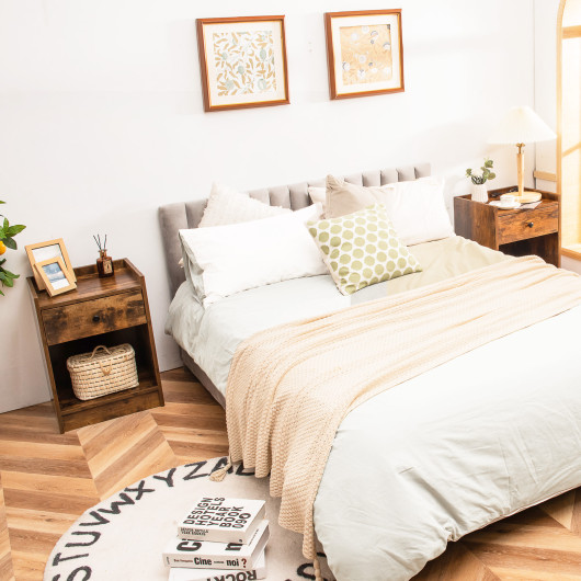 Set of 2 Nightstand with Drawer Cabinet End Side Table Raised Top-Brown