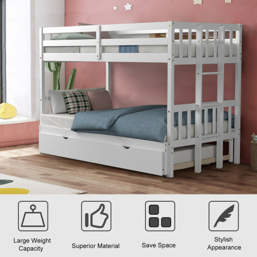 The maximum bearing capacity of each bed can up to 200 lbs. Full-length guardrails greatly protect kids. This bunk bed is equipped with trundles which makes it more easier to convert to different forms. 3 in 1 design is perfect for all kinds of occasions detachable design allows bunk bed to be divided into 2 separate beds. This multifunctional bunk bed is also a great choice for limited space. Stylish appearance is popular and highly compatible with surroundings.