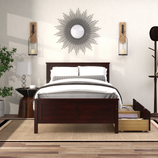 Twin Size Bed Frame with Storage Drawers-Espresso