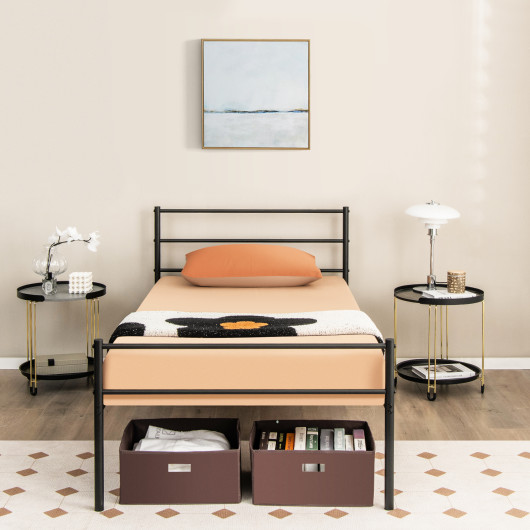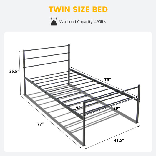 Twin Size Metal Bed Frame Platform with Headboard-Black